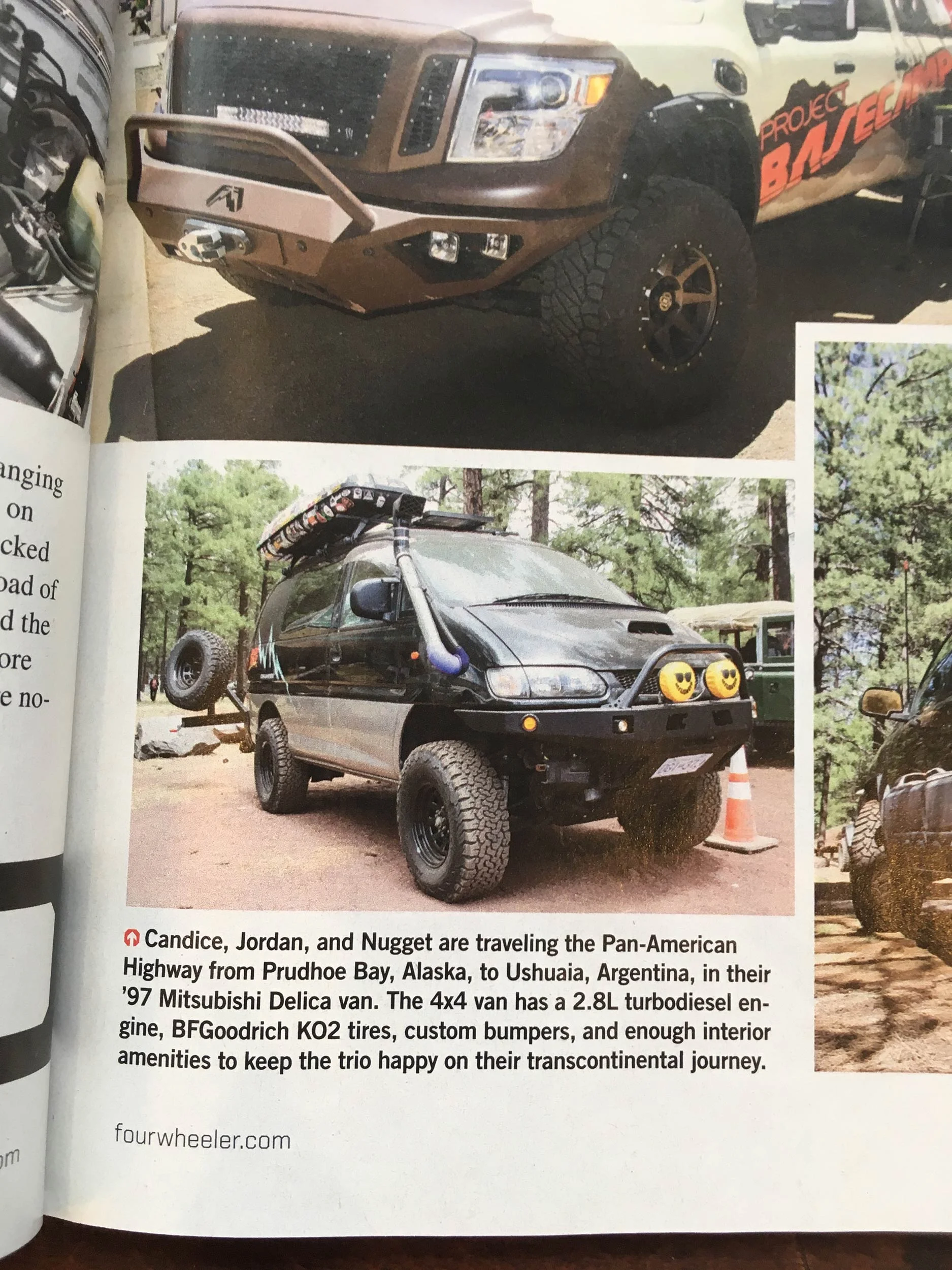 the november 2018 issue of fourwheeler magazine mentioned us in a report of the overland expo west 2018. our route was a little less solid then, but cool to see ole bagheera in print!