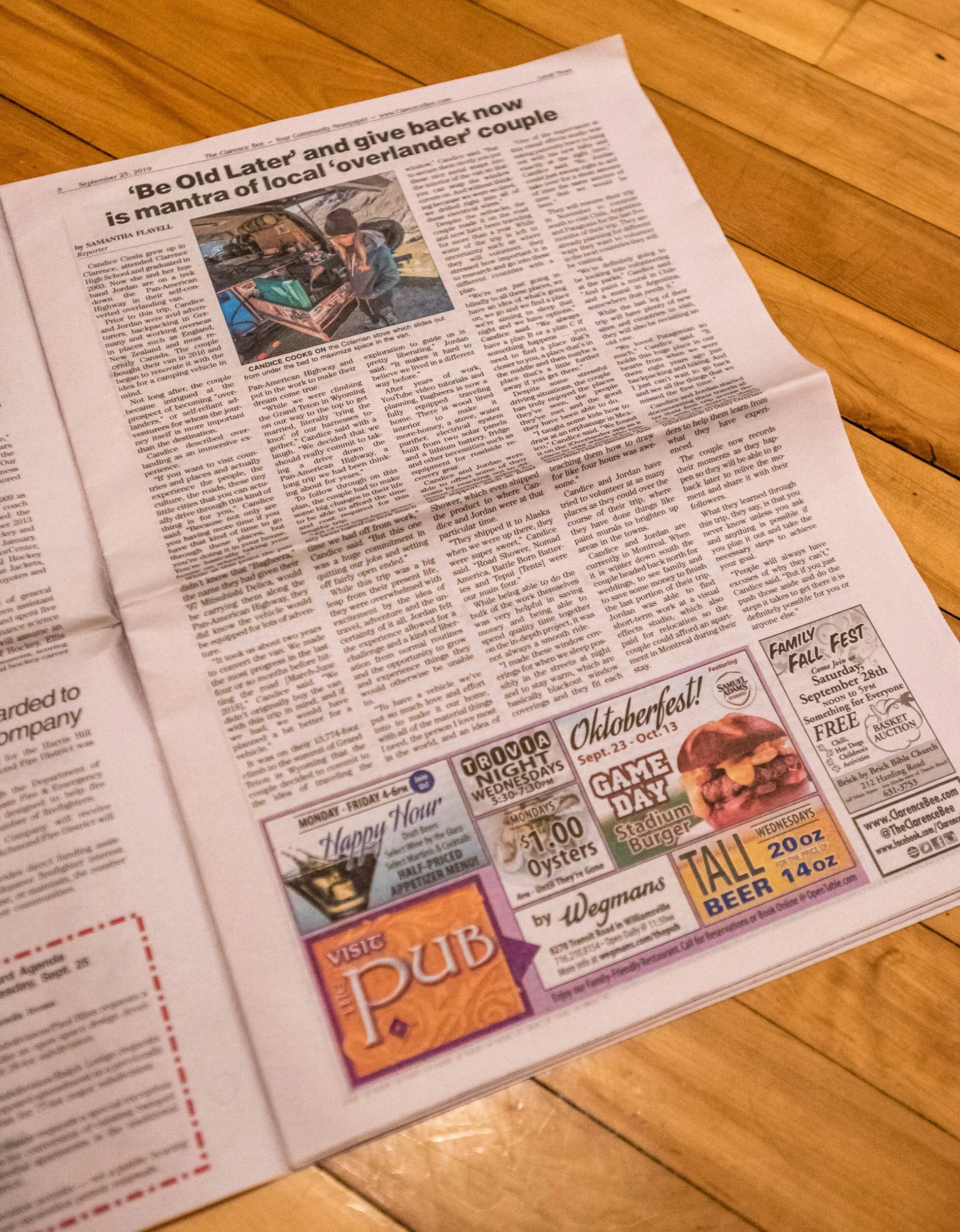 oh hey there clarence bee. candice’s hometown paper did a nice little article on us and our pan-american road trip!