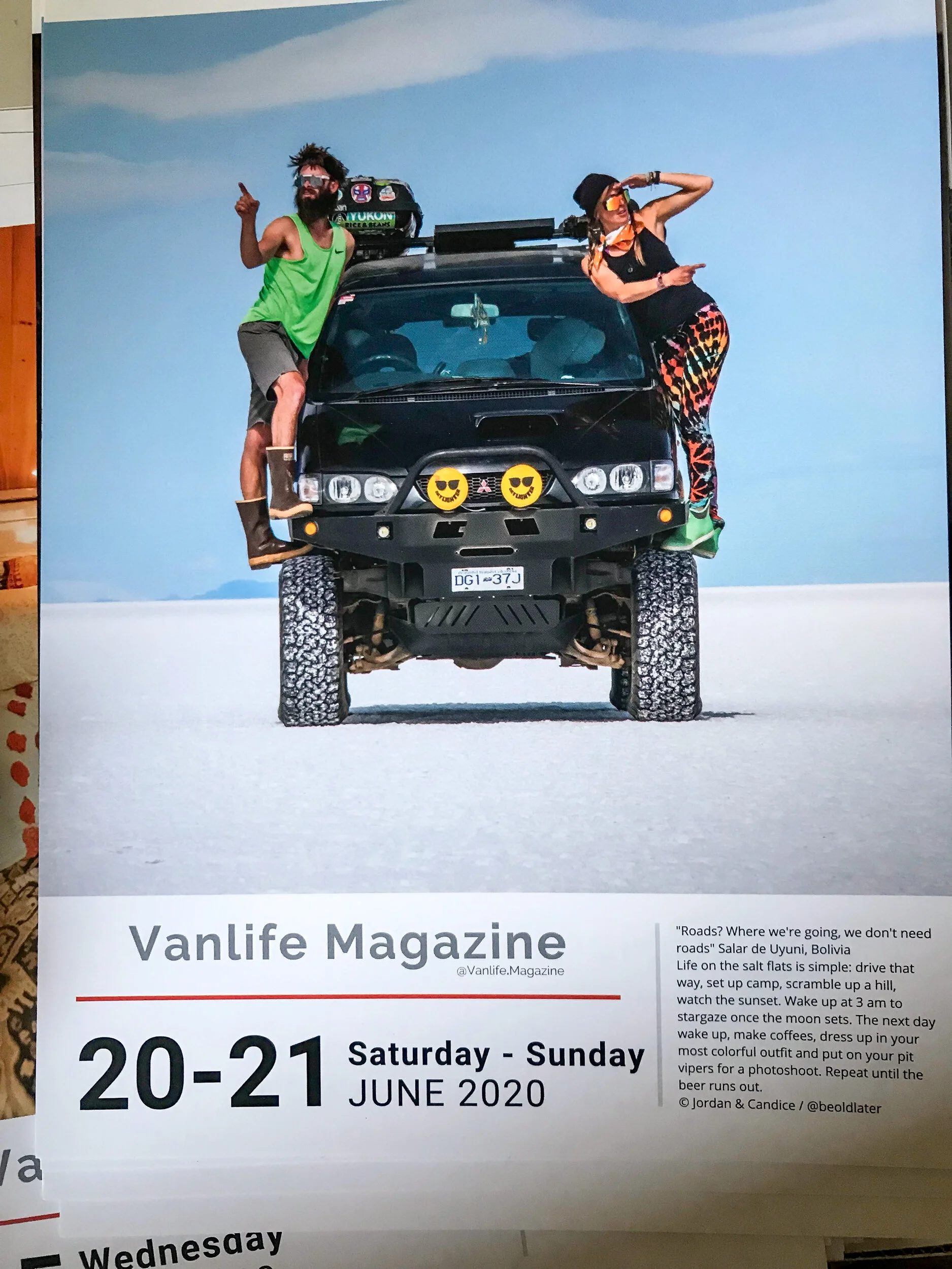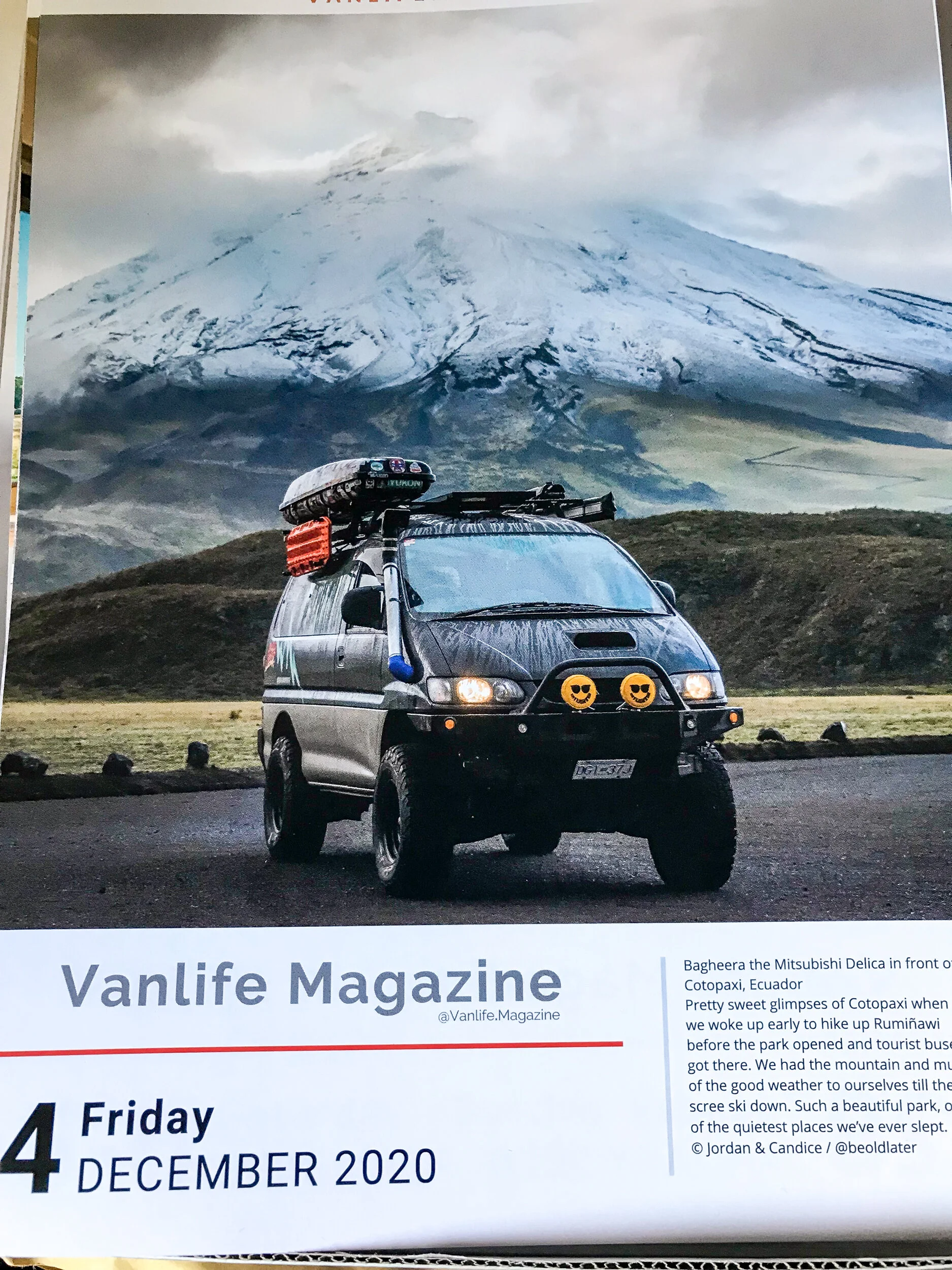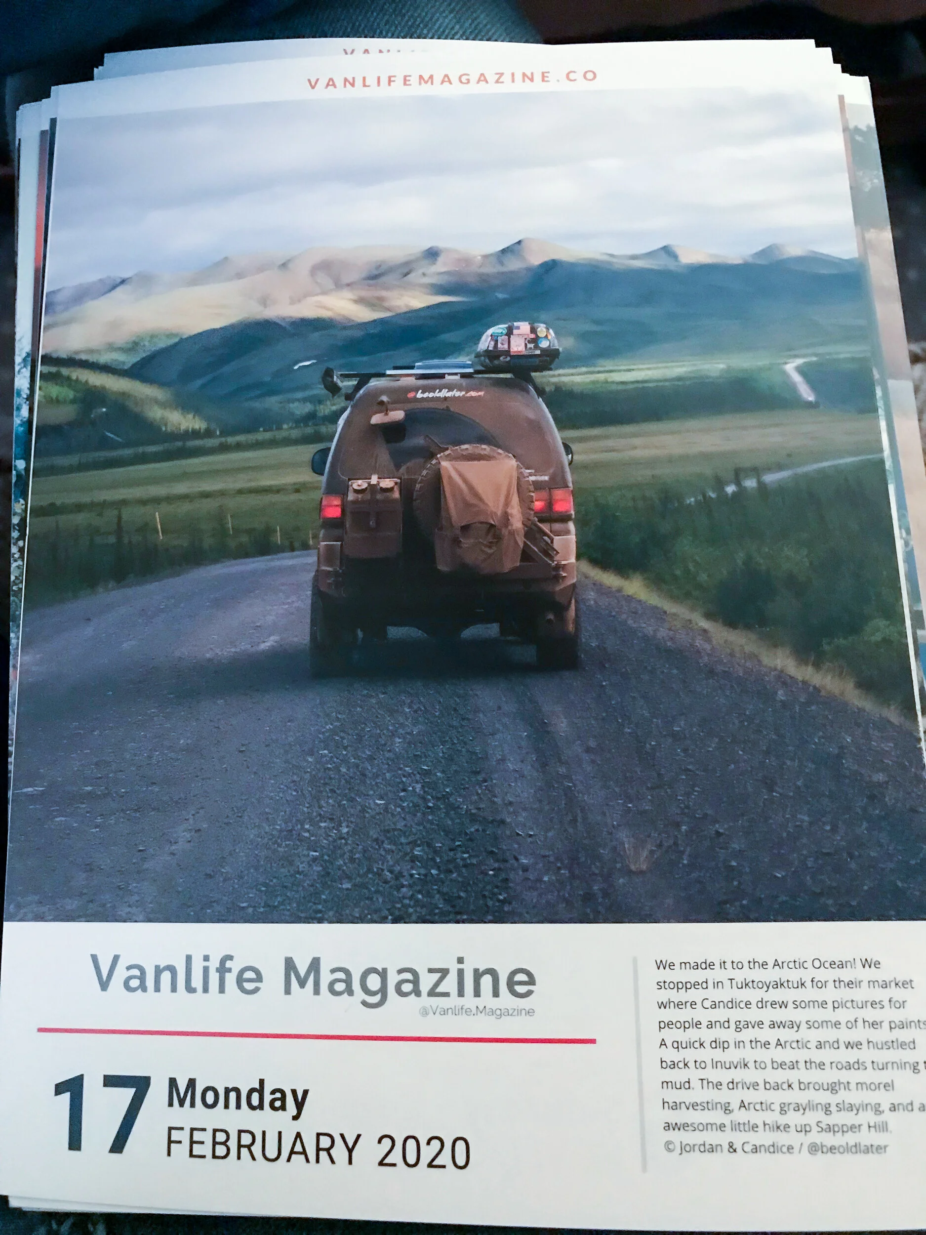 we’ve been featured in the vanlife magazine calendar 2020! and we’ve been featured thrice. it’s not your everyday calendar, it’s 320 pages of sweet shots from travelers all over the world. if you’re interested in grabbing a copy — it’s a bit pricey if you’re living on the road — but man is it cool. using the link above will give us a little bit of the sale through an affiliate program, so if you’re into the calendar and want to get some vanlife inspiration and also throw a little support our way, you can buy through this link. thanks! and enjoy.