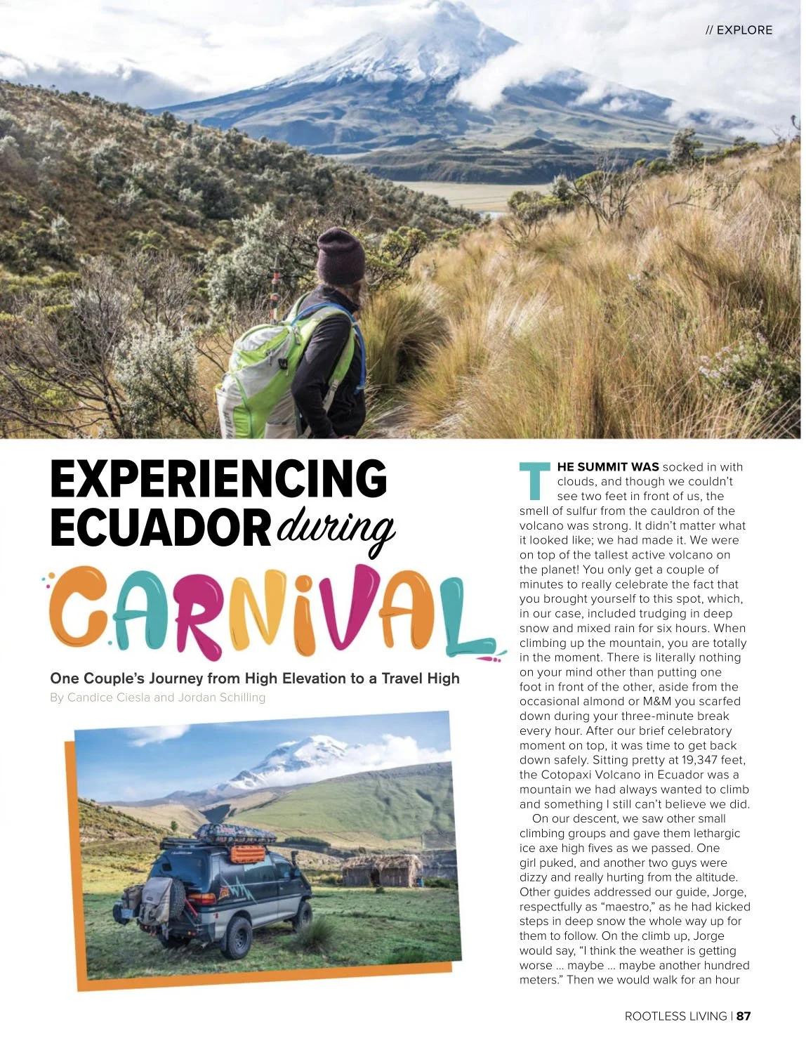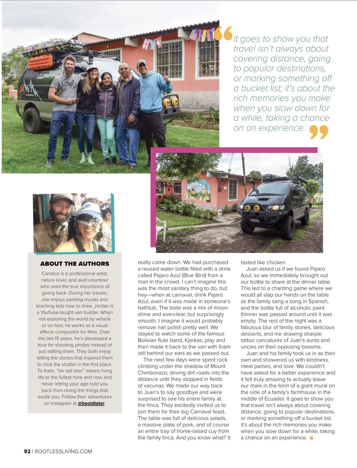 A story Candice wrote was featured in the Nov/Dec 2021 Issue of Rootless Living Magazine
